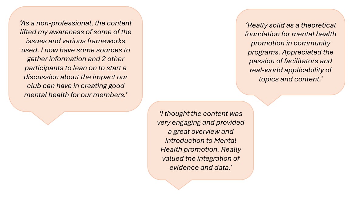 With almost 800 mental health promotion practitioners having already attended our mental health promotion training, we are rapidly transforming the way Australia understands and approaches mental health promotion. Together, we’re shifting the trajectory of mental ill-health across Australia.